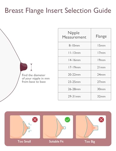 - The size of the flange insert is very important for comfortable and efficient pumping. Some moms experience nipple swelling while expressing, so it is advisable to observe the appearance of the nipple during pumping. If your nipple rubs or feels squeezed in the flange channel, it is an unsuitable flange size and you need to replace the right size flange insert.