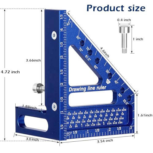 - Enhanced Precision for Woodworking: Made from high-quality aluminum alloy, our ruler offers durability and precision, featuring built-in scales for common angles. Its versatile design simplifies multi-angle measurements