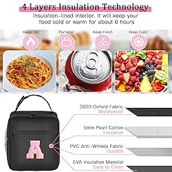 Initial Insulated Lunch Bag, Lunch Box with Initial Letter Patch for Teen Adult, Reusable Lunch Bag for Men Women, Ideal Back to School Gift Back to School Gift Birthday Gift, Pink A