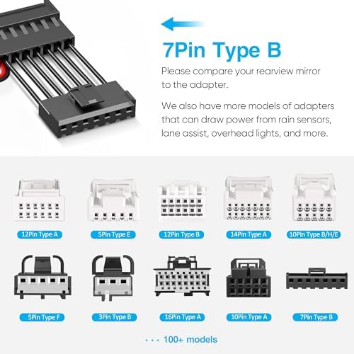 DashCam Power Adapter,(7P Type B)Fit Select Chevy/Ford/Honda/Lexus/Mitsubishi/Nissan/Toyota/Subaru,Connect to Auto-Dimming Rearview Mirror,Power Adapter Charging Cable for GPS Dash Cam Mirror Camera