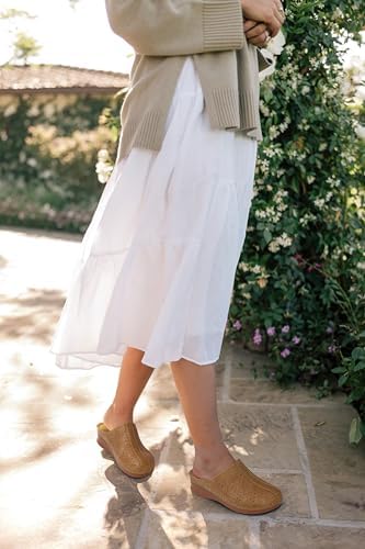 TEMOFON Clogs for Women Mules Slip on: Comfortable Wedge Clogs Dressy Summer Fall Mules Closed Toe Platform Sandals Shoes Brown Size 7