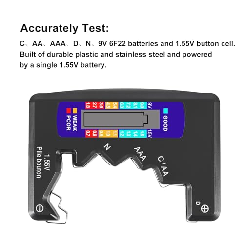 - HIGH COMPATIBILITY Testing Range: C, AA, AAA, D, N, 9V (6F22) and 1.55V button battery