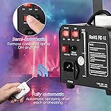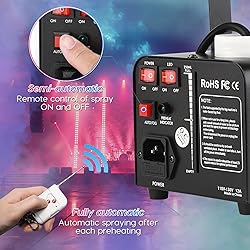 〖Auto Spray〗The LURT newly upgraded 3-light fog machine frees your hands. You only need to press the “AUTO FOG” button on the machine body. After the preheating light turns green, the fog will spray for 15-40 seconds, and your party will be full of atmosphere. Suitable for photography or when you want to create the ideal atmosphere. 〖Easy to Use〗You can turn the smoke on and off separately through the wireless remote control within a 50-meter radius when you turn off the automatic spray on the machine. Of course you can turn lights and smoke on or off on the machine body. 〖Efficiently & Huge output〗 LURT fog machine takes 3-4 minutes to heat up for the first time and only takes 1-2 minutes to warm up at each time later. The duration of a single spray is about 15-40 seconds, the spray distance is 2-3 meters, and the non-toxic fog output is 2500 CFM. The indicator light turns green when preheating is complete. The three-color lighting effect cannot be changed. 〖Safely & Eco-friendly〗The machine is made of high-quality aluminum and iron, and the device has an overheat protection device that automatically cuts off the power when it overheats. Once overloaded, the fuse will also burn out. Keep you away from hidden dangers under standard operation! The fog machine holds FCC and RoHS certifications, guaranteeing safety. Package includes a 500W fog machine, wireless controller, power cord, handle, user manual and operational video. We strive to enhance our product quality and user experience continuously.