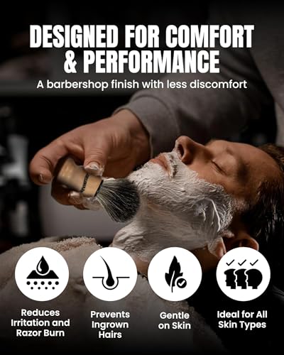 - DURABLE & REFINED MATERIALS - Our men's shaving kit includes a shaving brush with stand and pure badger shaving brush bristles, ensuring enduring craftsmanship. Each piece is built for consistent performance and a premium shaving experience.