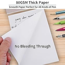 Small Note Pads: 3x5 inches memo pads come in a pack of 8 pad books, with 50 sheets each pad, which is great for jotting down grocery lists, to do lists, phone numbers, taking messages, etc. Perfect for waiters and waitresses Tear off Easily Without Falling Apart: Our note pads are durable and the adhesive binding holds up well, even after multiple pages have been torn off. The pads of paper are thick and sturdy so that your pen does not rip through the paper No Bleeding Through: The blank note pads are made of 80 GSM thick paper, ink does not bleed through to other papers, doesn't tear while writing as well; the scratch pads are smooth, suitable for gel pen, pencil and pen of any type Portable Memo Pads: These notepads with a cardboard back are the perfect size to fit in your pocket, car or office desk, making them extremely portable and convenient; you can take notes of all sorts of things without wasting paper Perfect for Quick Notes: Whether you need them for work, study, creating shopping lists, to do list, or recording meeting notes, the notepads cater to every need; the scratch pads are indispensable at home or office; the pads are NOT STICKY