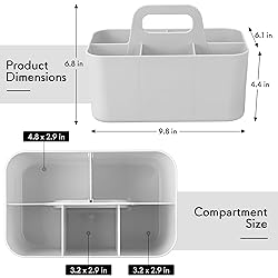 - Use our caddy organizers for various things throughout your home to organize Dimensions: 9-7/8"x6-1/8"x4-3/8" Can be used in any room of your home and office - use them in craft rooms, bedrooms, bathrooms, kitchens, offices, garages, toy room and more. Hold everything. Portable and Stackable Design With easy-grip handle, it can be simple carried for adults or even little kids. With portable design, it will be a great space saver in your home and office.
