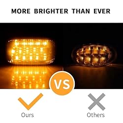 【Product type】Newest Style Error Free Flowing Led Signal Turn Light. 【3X Brighter Than OEM Light Bulbs】Each Piece Is Powered Amber SMD Led Diodes. That have over 3 times brighter lighting output vs the OEM sidemarker lamps. Built-In High Power SMD LED Chips to Brighten Up the Surrounding Areas of Your Vehicle. 【Fully Plug & Play】High Quality Easy Installation.Simply Remove Original Housing & Replace. Connect The Plug. Done. 【Direct-Fit Replacement】Identical to OEM Specification. No Modification or Trimming Needed. 【Advantage】 - Give Your A Modern Consequential Led Appearance To Enhanced Safety Visibility At Night.