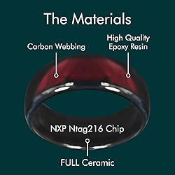 NFC Ntag216 Chip Ceramic Smart Finger Ring Programmable 888 Bytes Compatible with NFC Phone and Devices for Men or Women (Red, US#10)