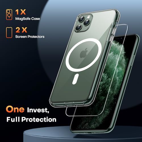TAURI for iPhone 11 Pro Max Case Clear, [Compatible with Magsafe] with 2X HD Screen Protector, [Military Grade Drop Protection] Shockproof Slim Case for iPhone 11 Pro Max Phone Case 6.5 inch