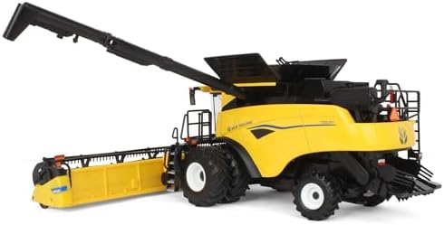 Decorated with updated New Holland combine graphics, this 1/32 scale New Holland CR9.90 Combine is part of ERTL's Prestige Collection! It is constructed with a die-cast metal body and includes both a detachable 880CF-40 draper head and a 980CF folding corn head. This combine features clear cab windows that reveal a detailed cab interior, a feeder housing that can be raised and lowered, plus a front platform and rear engine deck safety railings. It comes configured with dual front wheels and an oscillating steerable rear axle. According to the manufacturer, this replica is recommended for ages 14+ years, meaning it is for display only and not for play. This replica is not a toy.