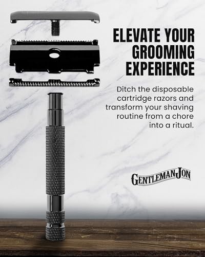 Gentleman Jon Gunmetal Safety Razor for Men, Double Edge Stainless Steel Razor, Precision Shaving with Heavy-Duty Construction, Designed for a Close Smooth Shave, Prevents Irritation, Gunmetal Finish