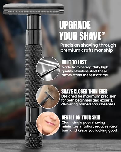 • PROTECTIVE SHAVING DESIGN - Achieve a smooth, safe shave with this safety razor for men. It reduces the risk of cuts and irritation, making it an ideal choice for both experienced users and beginners seeking men's safety shaving razors.