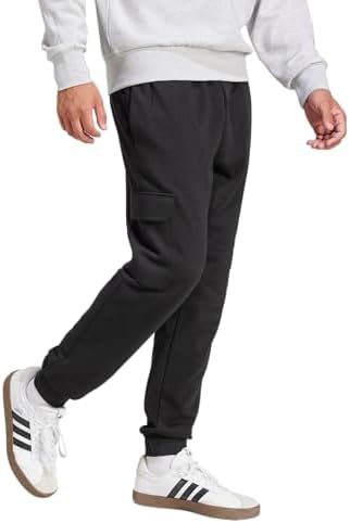 adidas Men's Essentials Feel Cozy Fleece Cargo Pants, Black/White