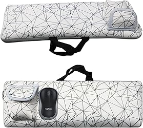 - The Portable Wireless Keyboard case– the ultimate protective solution for Keyboard and Mouse Set. Designed with precision and functionality in mind, this bag ensures your devices stay clean, safe, and always within reach. Crafted to provide a perfect fit, our keyboard bag snugly accommodates the KM3322W/HP 230/HP 330 set, ensuring optimal compatibility and protection. The soft, dustproof, waterproof, and shockproof material shields your keyboard and mouse from everyday wear and tear, keeping them in pristine condition no matter where your adventures take you. Whether you're working at home, commuting to the office, or traveling, this bag offers unparalleled defense against spills, dirt, and accidental drops. The external mouse pocket is a thoughtful addition, allowing you to keep your mouse securely attached to your keyboard, eliminating the hassle of separating them when on the go. The portable hand- held design makes it easy to carry, ensuring convenience and portability without compromising style. And when it's time to store your keyboard, the compact size helps save space, fitting effortlessly into backpacks, drawers, or briefcases. Cleaning your AF-WAN keyboard bag is a breeze – simply toss it in the washing machine for a quick refresh, making it not only durable but also low-maintenance. With dimensions of 17.7 inches x 5.9 inches(45 x 15cm), this bag is tailored to fit your keyboard and mouse comfortably while remaining compact and lightweight. Suitable for domestic, business, travel, or outdoor use, this bag is an essential accessory for anyone who values their equipment's safety and cleanliness. Embrace the convenience and security it brings to your digital life – order now and elevate your on-the-go experience! Compatible With Dell KM3322W Keyboard and Mouse Compatible With HP 230 Wireless Keyboard and Mouse Compatible With HP 330 Wireless Keyboard and Mouse Combo Material: Neoprene ; Color: Black/ White Paking List: 1 x Keyboard case