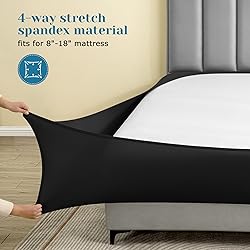 Stays Put All Night: This sheets set is made of superior 4-way stretch fabric - - ensure the sheets can stretch and fit the mattress tightly like a glove without wrinkles and slip-off. 6 Pieces King Size Sheets Set: The whole bed sheets set includes (4) pieces of 20.5 x 37 inch envelope pillowcases, (1) piece of 102 x 105 inch flat sheet, and (1) piece of 78 x 80 x 16 inch fitted sheet. Fits Up to 18-inch Mattress: The 4-way stretchy spandex microfiber blend fitted sheet can fit with most mattress sizes up to an 18-inch mattress depth and allows for snugly fit of a thick mattress. Super Soft and Stretchy: The whole sheets set is a lightweight knit jersey - - lightly brushed on both sides - - for more softness. The exceptionally durable construction of fabric remains intact and colors fast even after multiple washes. How to Maintain the Softness: Machine wash in cold water with mesh laundry bags, then tumble dry or iron at low temperature without bleach.