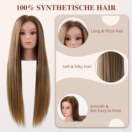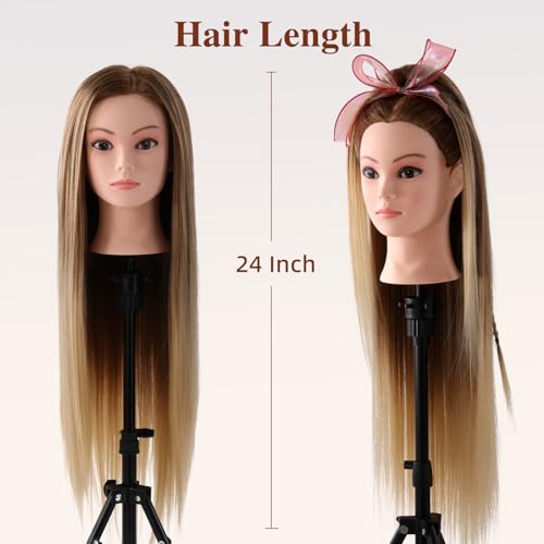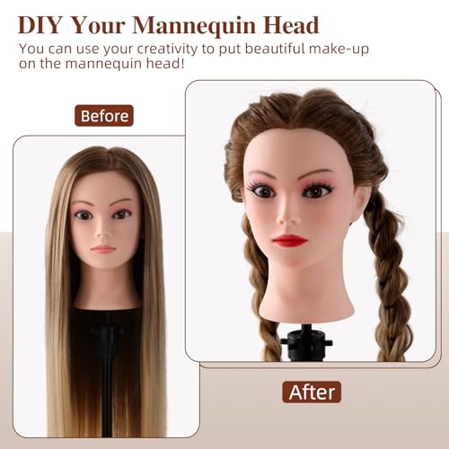 - 【Appealing Design】Hair mannequin head with Blonde gradient colour hair and a length of 24 inches, our mannequin head serves as an attractive, realistic medium for your hairstyling practice.