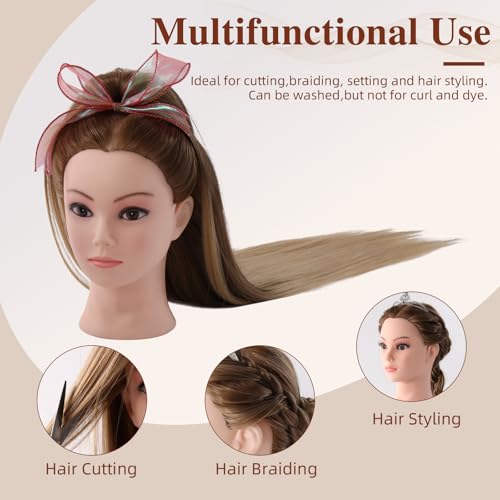 - 【Suitable for Different Users】Cosmetology mannequin head designed for aspiring hairstylists, professionals, and young girls eager to explore creative hairstyling, this mannequin head provides a versatile tool for home, hairdressing schools, and salons.