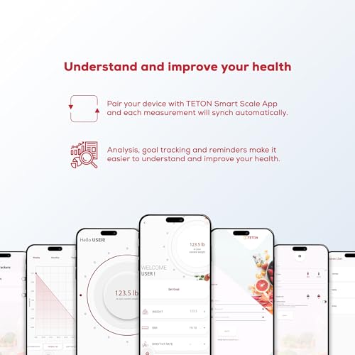 - Family-Friendly and Goal-Oriented - The Teton scale supports unlimited users, allowing each family member to track their body weight and 12 other measurements. This body composition scale helps set goals, save historical data, and track daily, weekly, and monthly progress. As a bathroom scale for body weight and fat percentage, it’s an essential bathroom must haves. Its user-friendly design makes it the ideal bathroom accessory for your home, ensuring everyone can maintain their health goals.