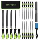 - Introducing the Yougfin 19 Pieces Metal & Rasp File Set, designed for high-quality filing performance on various materials. This set includes 12 needle files for wood, metal, and diamond filing, 5 large steel files, and a 4-way file. Crafted with premium T12 carbon steel and GCR15 steel, these files have a body hardness of 62~66HRC, making them durable and long-lasting. The teeth have been deeply quenched and coated to ensure excellent filing performance. The versatile set can be used for filing, deburring, shaping, trimming, and smoothing metal, wood, jewelry, plastics, ceramics, glass, and more. Perfect for professional craftsmen and DIY woodworking enthusiasts alike. To maintain the files' quality, protect the teeth by storing them in the provided tool bag. Use the included brush to clean out teeth particles for smoother filing. A light touch of machine oil will help preserve their surface finish.