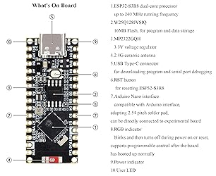 The ESP32-S3-Nano Development Board with Pre-Soldered Header, adopts ESP32-S3R8 chip and is compatible with Arduino Nano ESP32. It is compact in size and powerful, suitable for applications such as IoT and MicroPython, and easy to integrate into your projects. Adopts ESP32-S3R8 chip with Xtensa 32-bit LX7 dual-core processor, capable of running at 240 MHz Integrated 512KB SRAM, 384KB ROM, 8MB PSRAM, 16MB Flash memory. Integrated 2.4G H z W-i-F-i and Blue-too-th LE dual-mode wire-less communication, with superior RF performance Supports seamlessly switching between Arduino and MicroPython programming, more flexible usage Compatible with Arduino IoT Cloud, allows monitoring and controlling your project from anywhere by using the Arduino IoT Cloud app Supports HID, emulating Human Interface Devices such as keyboards or mice via USB port for easier interaction with PC Online Development Resource/User Manual is provided: bit.ly/4f4nLRg