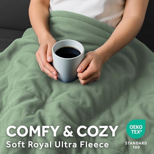 Sunbeam Royal Ultra Fleece Heated Electric Blanket Twin Size, 84" x 62", 12 Heat Settings, 12-Hour Selectable Auto Shut-Off, Fast Heating, Machine Washable, Warm and Cozy, Matcha