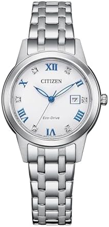 Citizen Ladies Eco-Drive Dress Classic Watch, Silver-Tone Stainless Steel Bracelet, White Dial, 3 Hand, Date (Model: FE1240-57A)