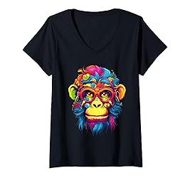 Womens Psychedelic monkey, nerd, psychedelic nerd V-Neck T-Shirt