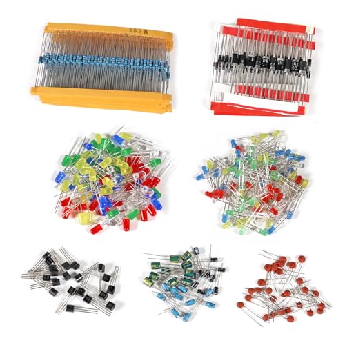 - Package:300pcs Ceramic Capacitors,120pcs Aluminum Electrolytic Capacitors,180pcs TO-92 Transistor,200pcs LED,100pcs Diodes,300pcs 1/4W Metal Film Resistors.