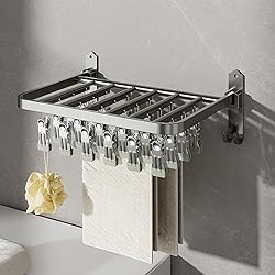 - 1. FOLDABLE DESIGN: Save space with the 90 degree foldable design of the sock rack, for small spaces and convenient storage, maximize your living area by easily folding the rack when not in use. 2. MULTIFUNCTIONAL STORAGE: The versatile rack offers multiple storage options, suitable for organizing socks, underwear, and other garments neatly, keep your closet or laundry area tidy and well organized with the convenient storage solution. 3. ALUMINUM MATERIAL: Crafted from aluminum, the rack is and weather , making it ideal for outdoor use on balconies for additional storage options. Use it as a rack for organizing and displaying various items. 4. SELECTED MATERIALS: With meticulous craftsmanship and carefully selected materials, the rack ensures that your clothes are stored without deformation. Enjoy the quality construction and excellent performance of the rack for long lasting use. 5. STRONG LOAD BEARING CAPACITY: Experience exceptional load bearing capabilities with the rack, allowing you to place it on top of washing machines to store laundry detergent, powder, and other items. Specification: Item Type: Sock Rack Material: Aluminum PackageList: 1 x Storage Rack 18 x Clips 16 x Installation Accessories or 1 x Storage Rack 24 x Clips 16 x Installation Accessories