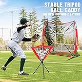 7x7' Baseball & Softball Net for Batting Pitching Hitting - Large Ball Collection System, Portable Baseball Training Equipment with Strike Zone, Tee, Ball Caddy, for Adult Sport,Youth Practice