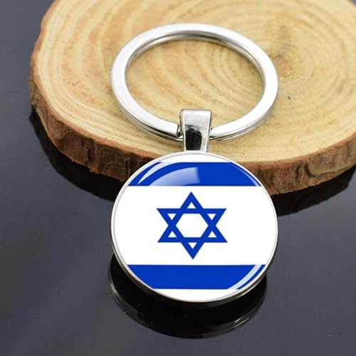 Art Attack Israeli Flag Keychain, Israel National Team Items Map Country Charm Pendant Key Chain Ring Souvenir (Silver)