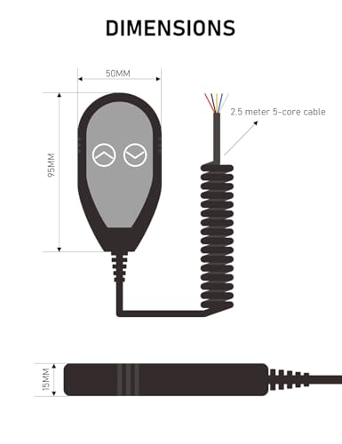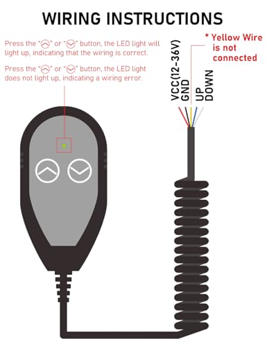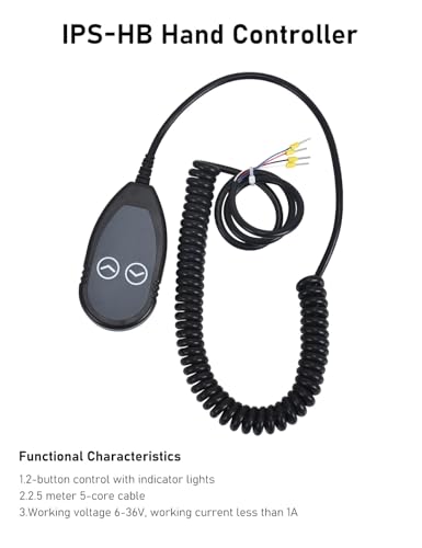 Model:IPS-HB Handle Controller Working Voltage: DC 6V-36V Working Current: less than 2 Amp Wiring: YELLOW wire not wired, RED wire VCC(Can Be Without Wiring), BLACK wire GND, BLUE wire ∧, WHITE wire ∨ Spring Cable Length: 250CM Mode: Press to connect the circuit, release to disconnect the circuit