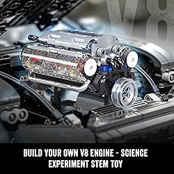 Individual Package - All accessories are packed in an independent packing bag, which is easier for everyone to understand. The package now includes easy-to-understand instructions. It is easy for everyone to understand and assemble. Build Your Own V8 Engine Kit - You are capable of building your own engine kit, they will get some awesome experiences developing this total model engine toy. To cause this little gadget to become animated unmistakably before their eyes! Engineering Building Kit for Building Toy Lovers - The Enginediy V8 Engine Model Kit will invigorate little teenagers and adolescents to develop their inventive brain, think truly, and even refine their motor aptitudes simultaneously. Teenagers can make the world with this norm by building their own engine kit. It makes science, mechanical masterminding, and even movement empowerment from start to finish. Battery Powered Design - Adults can gather with young people to refresh composed exertion; give them the data on science and industry, increase their arrangement and imaginative cerebrum; make mental and adroit thinking, and make inventive and innovative cutoff focuses. Requires 6 x AAA Batteries (Not included) Nice gift for car lover - This technology Engine building blocks with colorful gift packaging is a nice gift for their birthday/Christmas/New Year. All of my company's products have been strictly checked before shipping. If you have any problems with your purchase, please feel free to contact us!