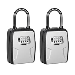STURDY AND DURABLE: Fayleeko key lock box is made of high strength zinc alloy and heavy-duty stainless-steel material, well-made and sturdy enough to withstand hammering, resist crushing, sawing, and prying. And the ABS shell can effectively prevent rain, dust, Snow, sun protection, and repeated use for a long time UPGRADE LARGE CAPACITY: The portable key security gym locker box provides large internal space for holding up to 6 house keys [shorter than 3.35 inches]; When you're traveling or out for business, you can put your house keys, car keys, or access cards in; EASY TO INSTALL AND USE: There are 2 mounting options for this combination lockbox for keys. You can mount it on the wall with supplied plugs and screws; besides, you can hang it anywhere easily including doorknob, metal fence, railing, and pipe, no tools needed; SAFE FOR KEYS: This key lock box with a 4-digit code that allows you to set your own combo code with 10000 unique choices, which ensure security and your keys safe. It is tightly sealed and waterproof, durable enough for the house key and outside key storage; WIDELY RANGE OF APPLICATION: By using this 4-digit key lock box that allows you or others access the key at any time, which perfectly suitable for daily activities, friends, relatives, home services, emergency entry, pet sitters and real estate business, etc;