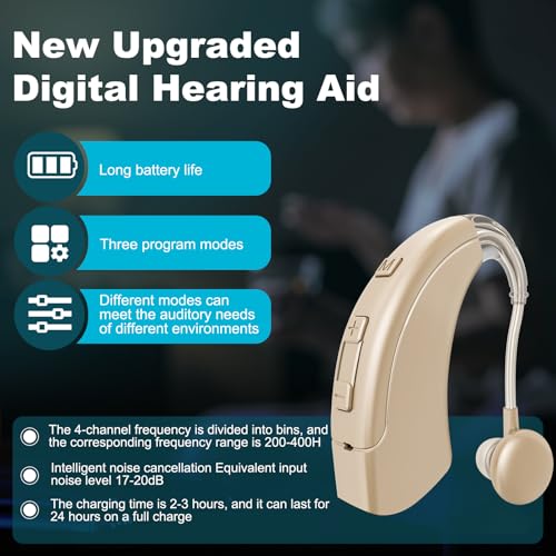 Hearing Aids for Senior, Rechargeable Hearing Amplifier for Mild to Moderate Hearing Loss, 3 Adjustable Modes, Long Battery Life, Suitable for the Left or Right Ear