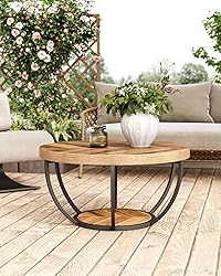[2-Tier Coffee Table] This round storage coffee table boasts a spacious wood top measuring 31.6 inches in diameter, offering enough space to store your books, cups, games, and snacks, keeping them easily accessible. The additional 18.3-inch bottom shelf offers extra space for your remotes, tissue boxes, and more. [Multi-Functional Cocktail Table] Enjoy a relaxing time with your friends or family. The round coffee table for living room has a beautiful finish and a subtly textured feel, which matches your living room/reception/office style and decor very well. It is suitable as apartment decor, a couch table, or a cocktail table. [Sturdy Wood Circle Table] The center table is made of high-grade thickened engineered wood, and 6 metal legs can support up to 77 lb, featuring strong weight capacity; with solid construction and selected materials, this small coffee table will not wobble. The unique design increases the sturdiness and protects your floor from scratches. [Simple Style Round Table] The wood coffee table creates a classic look that complements any personal taste and interior decor style. The multi-step finish process makes the wood grain veneer waterproof and wear-resistant, while ensuring the table remains sleek over time. [Easy to Assemble] Simple construction for easy assembly, portable for easy movement. It comes with a detailed illustrated user manual and necessary accessories so you can quickly assemble the coffee table.