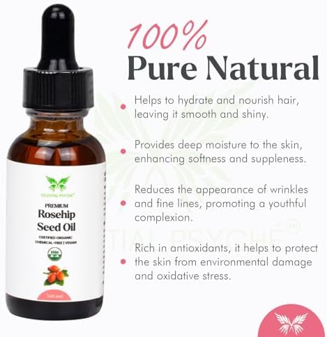 USDA Certified Organic Rosehip Seed Oil (1 Oz) 100% Pure Natural, Chemical-Free, Hair Moisturizer, Skin Hydration, Natural Beauty, Anti-Aging, Wrinkles Reduction, Antioxidants