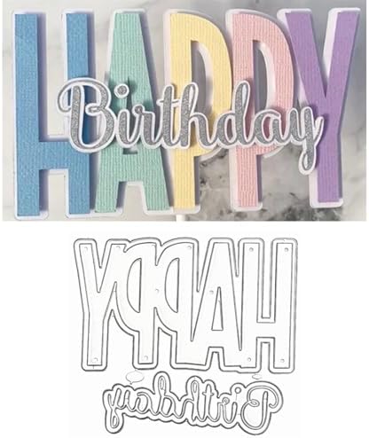 Happy Birthday Letter Metal Die Cuts,Big Words HappyBirthday Frame Background Wedding Cutting Dies Cut Stencils for DIY Photo Decorative Embossing Paper Dies for Scrapbooking Card Making
