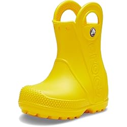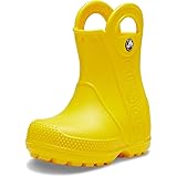 Now kids can enjoy classic Crocs comfort - even on the rainiest days. These Crocs Kids Handle It Rain Boots with a waterproof build keeps puddle-jumping feet cozy and dry. The oversized handles make it easy for kids to take these boots on and off, an Unlined. Pull-on style. Branding on the back. Round toe design.