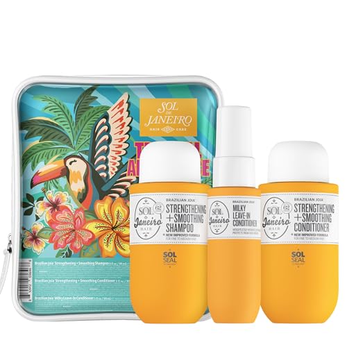 Sol de Janeiro Tropical Abundance Hair Repair Trio Travel Set | Jet Set | Sulfate Free Brazilian Joia Shampoo and Conditioner | Leave In Conditioner Spray | TSA Friendly | Amazon Exclusive