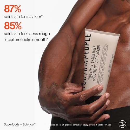 Youth To The People 10% AHA + Yerba Mate Smoothing Energy Body Scrub (8 fl oz), Exfoliates Rough Texture + Dry Skin, Suitable for Sensitive + Keratosis Pilaris Skin, Vegan