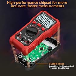 【Safety First】Neoteck digital multimeter has overload protection and short circuit protection functions, which can protect the safety of you and the instrument and extend the service life of the instrument.Moreover, this multimeter tester has a safety grade CAT III 600V and CE & RoHS certification, so you can rest assured that you do not have to worry about the risk of usage. 【2000 Counts Digital Multimeter】Neoteck 2000 counts multimeter can accurately measure DC/AC Voltage & Current, resistance, capacitance, frequency, duty cycle, continuity, diode ,temperature , live wire and NCV. In addition, its DC voltage accuracy up to ±(0.5%+4) and Ac voltage accuracy up to ±(0.8%+6),which helps locate faults or problems accurately. 【Easy to Read 】 Neoteck ditigal multimeter tester is equipped with a 2000 count LCD display that allows work in dark and backlit areas with clear and accurate readings. The multimeter also has automatic polarity display and unit symbol display, you can directly see the result of the unit, making the measurement results more clear and easy to read. 【Practical and Friendly Voltage Tester】Neoteck multimeter tester has the functions of switching manual/automatic range mode, data holding, low power indicator, automatic shutdown(After 15 Minutes without Operation), flashlight lighting, etc. These functions make it more intelligent and convenient to use.The digital multimeter has 2 pen holders on the back for easy placement and a screwdriver in the package for easy removal. 【Wide Applications】This 2000 counts multimeter is widely applied in schools, laboratories, factories and any other machining industry. Not only suitable for home users, beginners, maintenance enthusiasts, but also for professional electricians and technicians.