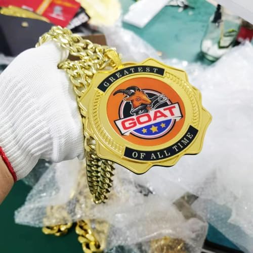 Custom Championship Chain Medal, 5" Personalize with Your Own Logo Or Art Winner Gift Gold Champ Medal Trophy for Baseball Goat Basketball Football Champion Chain