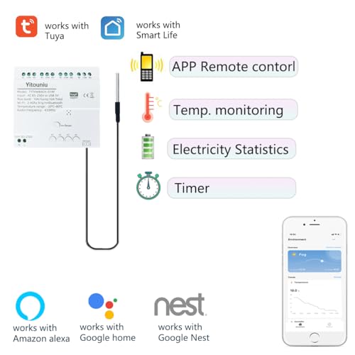 - Effective Temperature Management: The Yitouniu 4CH 12V Smart Temperature Switch is a versatile addition to your smart home system. It automatically operates connected devices based on the temperature range you set. You can conveniently open or close any appliance with just a few taps on your phone.