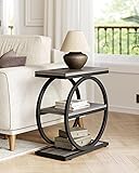 LITTLE TREE End Table, 3-Tier Side Table, Slim Sofa Side Table for Living Room, Tall Bedside Table Nightstand for Bedroom, Grey and Black