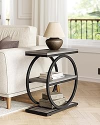 Space-Saving Design: Ideal for tight spots, this slim end table measures perfectly to fit beside your sofa or bed, bringing function without taking up precious square footage in your living space. Ample Storage: With three shelves arranged in a tiered fashion, you have plenty of space to store and display books, plants, decor, and more, keeping your essentials within easy reach. Sturdy Build: Constructed with a reliable, robust frame and persistent shelves, this sofa side table promises stability and long-lasting use in day-to-day life. Contemporary Look: Featuring a sleek profile with a high-end grey finish and black accents, this side table offers a modern industrial aesthetic that complements a variety of decors. Easy Assembly: Engineered for a fuss-free setup, this side table comes with clear instructions and can be assembled quickly, getting you organized in no time.