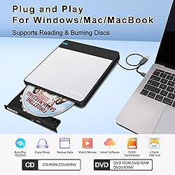 Plug and Play on Mac and Windows: This external CD/DVD drive for laptop has USB-C and USB 3.0 connectors and supports the fastest read/write speeds for both CDs and DVDs. Simply connect it to your Mac, MacBook Pro/Air or Windows computer and it will be automatically detected, allowing you to play the classical CDs, read client information, import vintage photo CDs, rip your CD collection and play DVDs which taken on your travels. No complex settings, easy to use, so playing discs is no longer an obstacle Practical and Multi-Functional: This NOLYTH external DVD drive is the perfect companion for laptop without an internal drive, which tailored for users who value simplicity and reliability. Ideal for listening to classical music, collecting classic movies, preserving cherished memories on CDs, installing legacy software and operating systems, disposing of old disc data and burning files High-speed Writing and Reading: This external CD drive offers a max 8X DVD+/-R write speed and 8X DVD read speed. With a max 24X CD-R write speed and 24X CD read speed, this CD burner also supports CD-ROM, CD±R/RW, DVD-ROM, DVD-RAM, DVD±R/RW, VCD, SVCD and various M-Discs With Hub Function: This DVD player for laptop has 2 USB ports, 1 SD card reader and 1 TF card reader. The additional USB ports are compatible with USB hard drives, wired or wireless mice and keyboards, and other USB computer accessories. The SD/TF card slot is perfect for transferring photo and video files from camera memory cards to your computer. Please note that the SD/TF card is not included Ultra-thin and Portable: This slim, stylish CD reader for laptop is only 0.7 inches thick and weighs just 0.66 pounds. You can easily carry this USB DVD drive external in your backpack and use it with your laptop wherever you go. Its brushed black case and silver aluminium top plate give it a stylish look that is perfect for your laptop Wide Compatibility: This CD drive external USB is compatible with Windows 11/10/8.1/7/Vista/XP/98/SE/ME/2000, Linux and all versions of Mac OS. It is perfect for Apple laptop, Mac, MacBook Air/Pro, iMac, Mac mini and various PC, desktop, all-in-one computers. NOTE: This external DVD player for laptop is not compatible with Chromebook, TV, Car, Tablet, iPad, PS4/5, Xbox, Switch, Projectors, Surface (some models), Blu-ray and 4K disc Best to Know Before Buying: For desktops, please connect the CD burner for laptop to the back USB port of the host to to avoid power shortage. For Mac systems, please note that the computer will not display the device icon until the disc has been inserted and successfully read. If the CDs or DVDs can't be read by the computer, use the included charging cable to connect to a 5V charger or power bank for extra power, as some computers don't have enough power to support the operation of the external CD drive for laptop Worry-Free Purchase: NOLYTH has professional CD DVD external drive manufacturing experience, ensuring reliable quality and professional customer service. Additionally, the external CD/DVD drive for laptop comes with a 1-year warranty and a 60-day money-back guarantee. Our customer support team is available 24/7 to assist with any questions or concerns. We want to ensure that you have the best experience possible