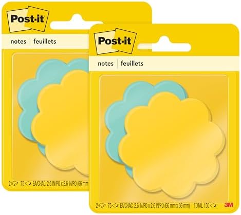 Post-it® Notes stick securely, yet remove cleanly. These are great to get your ideas noticed. The fun, daisy shaped notes liven up your message. Includes one pad of light blue daisies and one pad of yellow. Post-it® Notes are recyclable and the paper is sourced from certified, renewable and responsibly managed forests. 2 Pads/Pack.