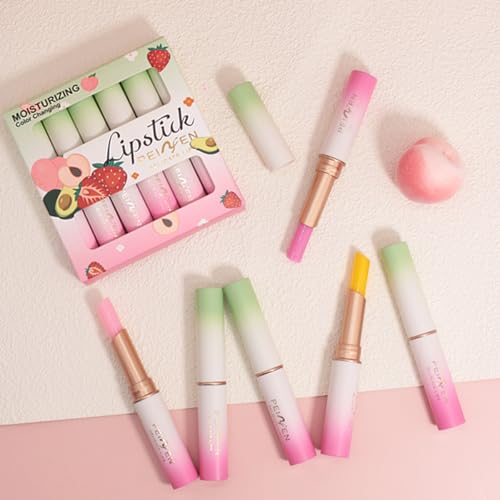 - 【6 Furit Flavor Jelly Lipstick Set】One set include 6 different fruit flavor lipsticks: Peach, Strawberry, Avocado, Orange, Grape and Blueberry.