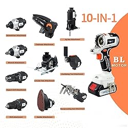 【Versatile 10-in-1 Power Tool Kit】Elevate your woodworking game with this comprehensive 10-in-1 combo kit, featuring essential tools like Recip Saw, Jig saw, Circular Saw, Chainsaw, Oscillating Tool, Screwdriver, Electric Wrench, Impact Drill, and Sander. Three tool boxes accompany the kit, ensuring all your woodworking needs are covered effortlessly. 【Safe & UserFriendly Operation】Simplify your tool adjustments with the quick lock/release system, enabling swift accessory changes. The one-touch lock and release button guarantee a secure and stable connection between the accessory and the base tool, prioritizing safety during use. 【Robust Performance】Experience exceptional power and longevity with the high-torque brushless motor incorporated in these electric woodworking tools. Enjoy at least 10 times the lifespan of traditional brush motor tools, eliminating the hassle of carbon brush replacements and maximizing the tool's longevity for sustained performance. 【Portable & Ergonomic DesignTackle woodworking projects with ease using the compact and lightweight design of this tool kit. The sturdy construction ensures durability, while the inclusion of a plastic box facilitates convenient transport. Say goodbye to fatigue during extended use, thanks to the ergonomic and lightweight construction. 【Comprehensive Solution】This woodworking kit is a one-stop solution, equipped with all necessary accessories, 2 x 4.0AH batteries, and a charger. Ensure uninterrupted workflow with compatibility for 18V B series lithium batteries such as BL1850B, BL1840B, BL1830B, BL1430B, BL1820B, BL1850, BL1840, BL1440, BL1415, and BL1815N.